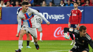 ក្រុមអ្នកមានបុណ្យ FC Barcelona បានវាយបកយកឈ្នះក្រុម Osasuna ក្នុងលទ្ធផល 2:1 ស្ទើរតែមិនគួរឲ្យជឿ ទោះ Robert Lewandowski ទទួលបានកាតក្រហមតាំងពីតង់ទី1 ក៏ដោយ។