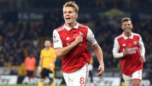 ប្រធានក្រុមវ័យក្មេង Martin Odegaard រកបាន2គ្រាប់ដើម្បីធានា3ពិន្ទុយ៉ាងសំខាន់នៅក្នុងកីឡដ្ឋាន Molineux។ គួររំលឹកផងដែរថា ក្រោយពីយកឈ្នះ Wolves ក្រុមកាំភ្លើងធំ Arsenal រកបាន37ពិន្ទុ ក្នុងចំណោម42ពិន្ទុដែលអាចរកបានសម្រាប់ការប្រកួតនៅរដូវកាលនេះ។ កំណត់ត្រាដ៏ល្អមួយនេះ ជាការធ្វើបានល្អបំផុតសម្រាប់ Arsenal ក្នុងរយះពេលជិត20ឆ្នាំ ដោយក្រុមមួយនេះកំពុងតែសម្លឹងឃើញពានលីកកំពូលអង់គ្លេសបណ្តើរៗទៅហើយ៕