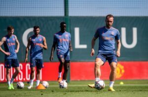 កីឡាករ Christian Eriksen បានឈានដល់ដំណាក់កាលដ៏សំខាន់មួយក្នុងផ្លូវឆ្ពោះទៅរកការជាសះស្បើយឡើងវិញ បន្ទាប់ពីត្រូវបានគេថតរូបពេលត្រលប់មកហ្វឹកហាត់នៅ Manchester United ។