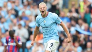 អ្នករាល់គ្នានៅកីឡដ្ឋាន Etihad បានដឹងថាពួកគេកំពុងទទួលបានទេពកោសល្យពិសេសនៅពេលដែលកិច្ចព្រមព្រៀងផ្ទេរ 51 លានផោន ជាមួយ Borussia Dortmund នៅរដូវក្តៅឆ្នាំ 2022។ Haaland មានលើសពីការរំពឹងទុកក្នុងអំឡុងពេលយុទ្ធនាការដំបូងរបស់គាត់នៅក្នុងប្រទេសអង់គ្លេស ដោយរកបាន 50 គ្រាប់ក្នុងនាមជាកីឡាកររបស់ Man City រួមទាំង 34 គ្រាប់នៅក្នុង Premier League ដែលបានតាមស្មើនឹងកំណត់ត្រាធំមួយដែលកាន់កាប់ដោយ Alan Shearer និង Andy Cole។