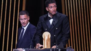 កំពូលតារាបាល់ទាត់របស់ក្លឹប Real Madrid កីឡាករ Jude Bellingham បានបង្កើតភាពងឿងឆ្ងល់ជាខ្លាំងជាមួយនឹងបញ្ជីឈ្មោះតារាបាល់ទាត់ដ៏គួរឱ្យភ្ញាក់ផ្អើលរបស់គាត់ បន្ទាប់ពីបានដាក់ឈ្មោះកីឡាករ Birmingham បីនាក់ក្នុងបញ្ជីរបស់គាត់។