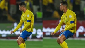 Ronaldo បានស៊ុតបញ្ចូលទីគ្រាប់បាល់នាំមុខសម្រាប់ Al-Nassr តាមរយៈបាល់ប៉េណាល់ទី ដោយដំបូងតារាសញ្ជាតិព័រទុយហ្គាល់រូបនេះបានអបអរគ្រាប់បាល់តាមស្ទីលធម្មតារបស់គាត់ មុនពេលដែលអ្នកគាំទ្រម្ចាស់ផ្ទះស្រែកឈ្មោះ Lionel Messi មិនឈប់ឈរ។ ជាលទ្ធផល Cristiano បានយកដៃដាក់ក្បែរត្រចៀក ដើម្បីជាការឌឺដងទៅកាន់អ្នកគាំទ្ររបស់ Al-Shabab មុនបញ្ចេញកាយវិការមិនសមរម្យ។