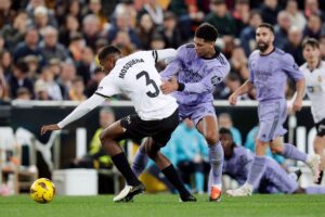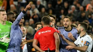 Jude Bellingham ត្រូវបានបណ្តេញចេញពីការប្រកួត បន្ទាប់ពីមានការមិនពេញចិត្ត ក្រោយគ្រាប់បាល់នៅវិនាទីចុងម៉ោងត្រូវបានបដិសេធដោយសំឡេងកញ្ចែបញ្ចប់ការប្រកួតក្នុងការប៉ះទង្គិចដ៏វឹកវរជាមួយ Valencia។