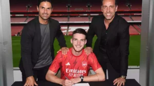Man City បានធ្វើការដេញថ្លៃ 90 លានផោន សម្រាប់ខ្សែបម្រើការពាររូបនេះ ប៉ុន្តែ Arsenal ជាអ្នកដែលទទួលបានជ័យជម្នះជាមួយនឹងសំណើរតម្លៃ 105 លានផោន ទៅកាន់ក្រុមញញួរយក្ស West Ham កាលពីរដូវក្តៅមុន។ ឥឡូវនេះ លោក Guardiola បាននិយាយអំពីរបៀបដែលពួកគេមិនអាចនាំយកកីឡាករសញ្ជាតិអង់គ្លេស ដែលជាកីឡាករដ៏សំខាន់មួយរូបសម្រាប់ក្រុមកាំភ្លើងធំនៅរដូវកាលនេះ មុនជំនួបទល់នឹងក្រុមរបស់លោក Mikel Arteta នាថ្ងៃអាទិត្យខាងមុខ។