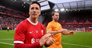 អតីតកីឡាករសញ្ជាតិអេស្ប៉ាញហាក់មានថយពេលវេលាមកក្រោយវិញ ដោយការស៊ុតបញ្ចូលទីទល់មុខអ្នកគាំទ្រ Liverpool ប្រមាណជាង 60000 នាក់ ខណះដែលវីរកីឡាកររបស់ Liverpool បានប្រកួតជាមួយវីរកីឡាករជើងចាស់របស់ Ajax ក្នុងការប្រកួតមិត្តភាពរៃអង្គាសមួយ ហើយ Torres នៅមិនទាន់ចង់បោះបង់ការជួបជុំគ្នាជាមួយ Liverpool នោះឡើយ។
