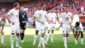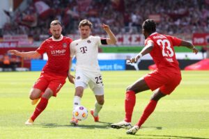 ម្ចាស់ការពារតំណែងជើងឯក 11 សម័យបានរងបរាជ័យក្រោមថ្វីជើងក្រុមដែលទើបតែឡើងមកពីលីកទីពីរអាឡឺម៉ង់ ទាំងដែលធ្វើការនាំមុខពីរគ្រាប់មុនដោយ Harry Kane នឹង Serge Gnabry។ គិតមកទល់ពេលនេះ Bayern Munich កំពុងឈរនៅលេខ 2 តាមពីក្រោមក្រុមកំពូលតារាងដែលមិនស្គាល់ពាក្យចាញ់សូម្បីមួយប្រកួតពោលគឺ Bayer Leverkusen រហូតដល់ទៅ 16 ពិន្ទុ ខណះដែលការប្រកួត Bundesliga នៅសល់ត្រឹមតែ 6 ប្រកួតទៀតប៉ុណ្ណោះ។