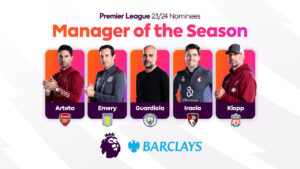 Pep Guardiola ធ្លាប់បានទទួលពាននេះចំនួន 4 រដូវកាលផ្សេងៗគ្នាមកហើយក្នុងអាជីពដឹកនាំរបស់គាត់ ស្របពេលដែល Klopp ក៏ធ្លាប់បានពានជាអ្នកចាត់ការឆ្នើមបំផុតប្រចាំរដូវកាលរបស់់ Premier League ចំនួនពីរដងផងដែរ។ ដោយឡែក Arteta នៅមិនទាន់ធ្លាប់ឈ្នះនោះឡើយ តែបានក្លាយជាបេក្ខភាពមានសង្ឃឹមខ្ពស់មួយក្រោយជួយអោយ Arsenal ឈរលើកំពូលតារាងស្របពេលការប្រកួតនៅសល់ត្រឹម 2 សប្តាហ៍ទៀតប៉ុណ្ណោះ។ ជាមួយគ្នានេះផងដែរ លោក Iraola បានរុញច្រាន Bournemouth ចេញពីតំបន់កាត់ចោល ខណះដែលក្រុមរបស់លោក Unai Emery កំពុងឈរនៅលេខ 4 ហើយអាចនឹងលេងការប្រកួត UEFA Champions League នៅរដូវកាលក្រោយ៕