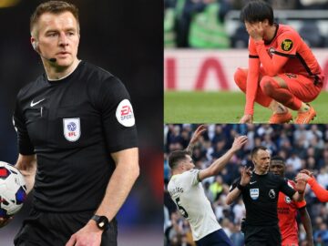 អាជ្ញាកណ្តាល Michael Salisbury ត្រូវបានព្យួរសម្រាប់ការប្រកួតជុំចុងក្រោយ បន្ទាប់ពីខកខានមិនបានផ្តល់បាល់ប៉េណាល់ទី អំឡុងការប្រកួតដែល Tottenham ឈ្នះ Brighton។ Salisbury គឺជាជំនួយការអាជ្ញាកណ្តាលវីដេអូ VAR សម្រាប់ការឈ្នះដ៏ចម្រូងចម្រាសរបស់ Tottenham ប៉ុន្តែមិនបានទទួលការស្នើសុំឲ្យមន្ត្រីការប្រកួត Stuart Attwell ពិនិត្យមើលឧបទ្ទវហេតុបាល់ប៉េណាល់ទីនៅតង់ទីពីរ។ Karou Mitoma របស់ Brighton ហាក់ដូចជាត្រូវបាន Pierre-Emile Hojbjerg ធ្វើឲ្យដួល ប៉ុន្តែមិនមានការស៊ុតបាល់បញ្ចូលទីត្រូវបានផ្តល់ជូនទៅខាងក្រុម Brighton នោះទេ។ លើសពីនេះ Brighton ក៏មានការស៊ុតបាល់បញ្ចូលទីពីរគ្រាប់ដែលត្រូវបានលុបចោលផងដែរ ក្នុងអំឡុងពេល 90 ...